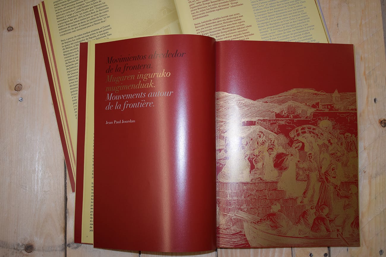 Gráfica para la exposición «A mis amigos de la frontera» en colaboración con K6 Gestión Cultural, y coproducida por el Museo Zumalakarregi y el Museo Vasco de Baiona. Diseño editorial para la publicación que se realizó con motivo de dicha exposición.