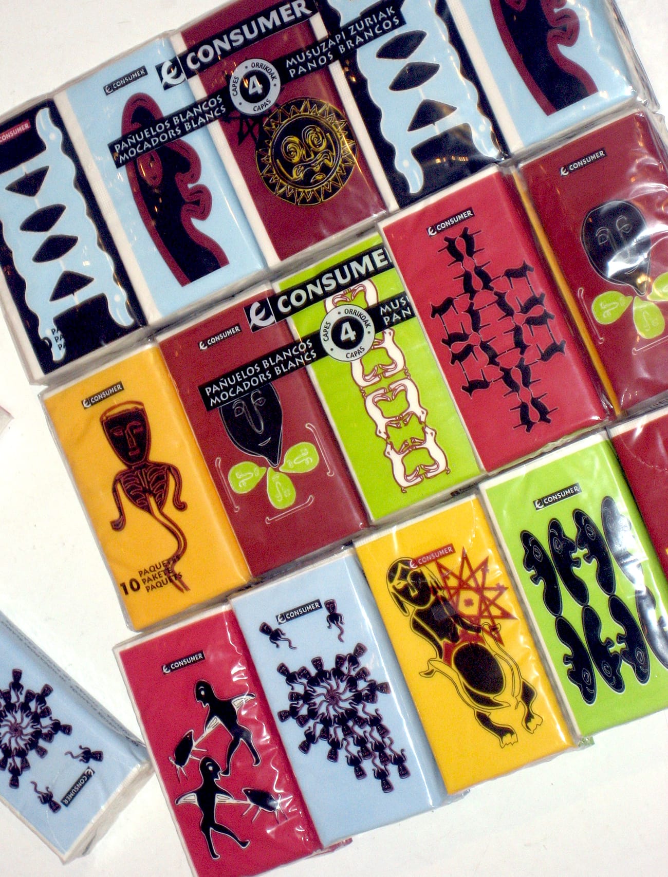 Diseño de una colección de ilustraciones para pañuelos de papel de la marca consumer de Eroski.